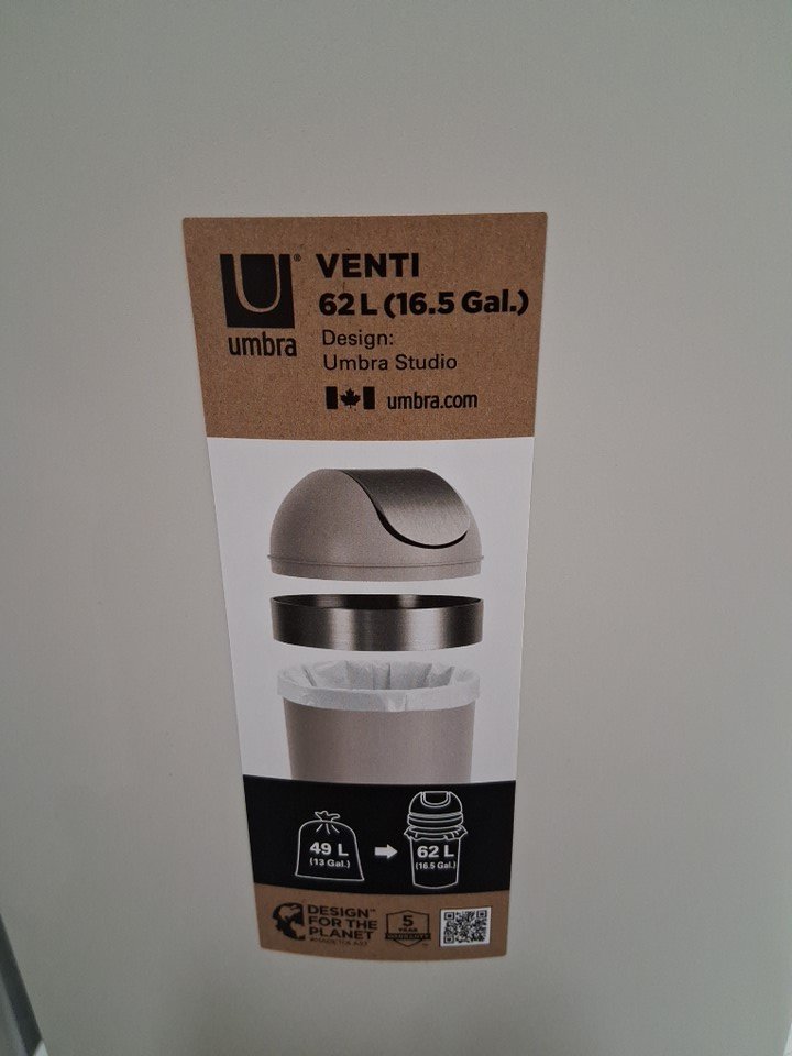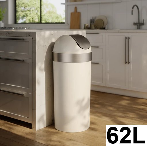 UMBRA VENTI SWING TOP KITCHEN TRASH CAN - 16-GALLON/62L - LARGE 35" TALL - GREY/STEEL (MODEL: 086758-1313-REM)