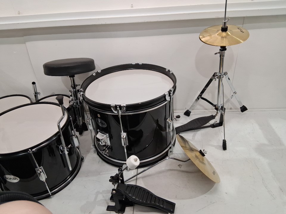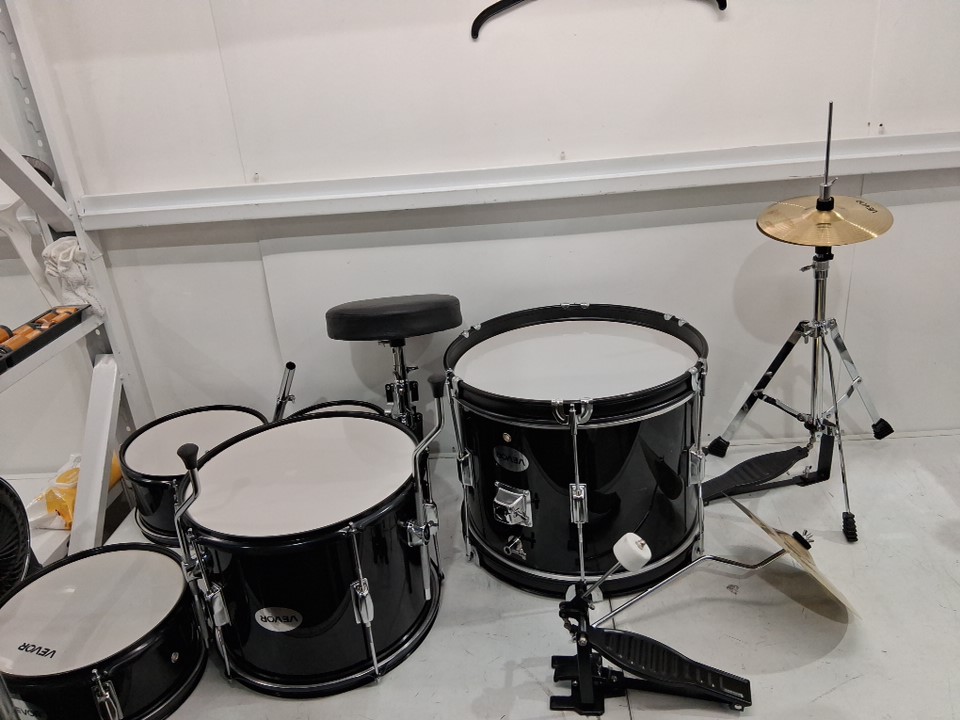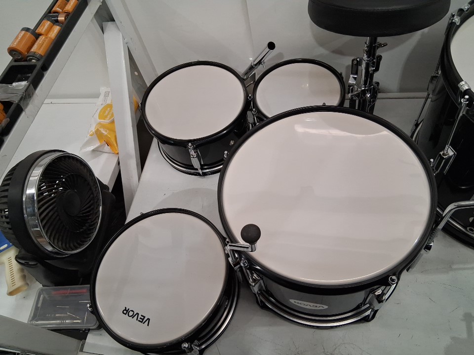 5pc kid's beginners drum set - bass drum, toms, snare and cymbals - black/white (model: sh-002-bk)