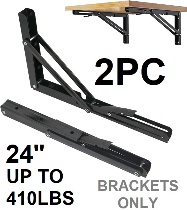 2pc Folding shelf brackets wall mounted folding table brackets - 24" - Up to 410LBS TOTAL - Black