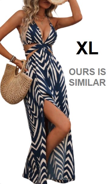 WOMEN'S SHEIN CURVE backless tie-wrap deep-v halter maxi dress - extra large - navy blue/white stripe