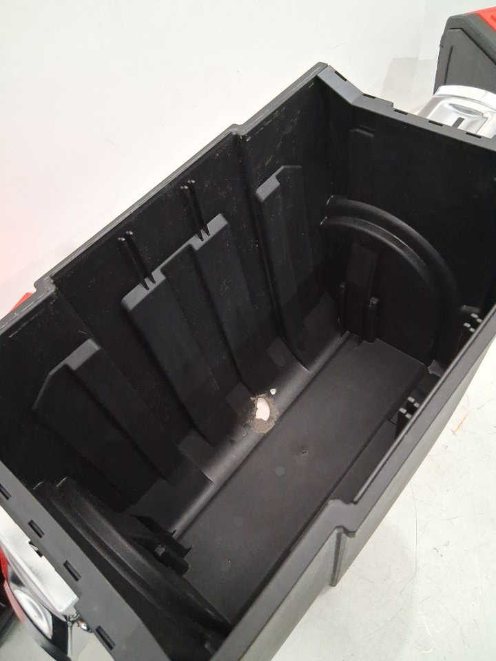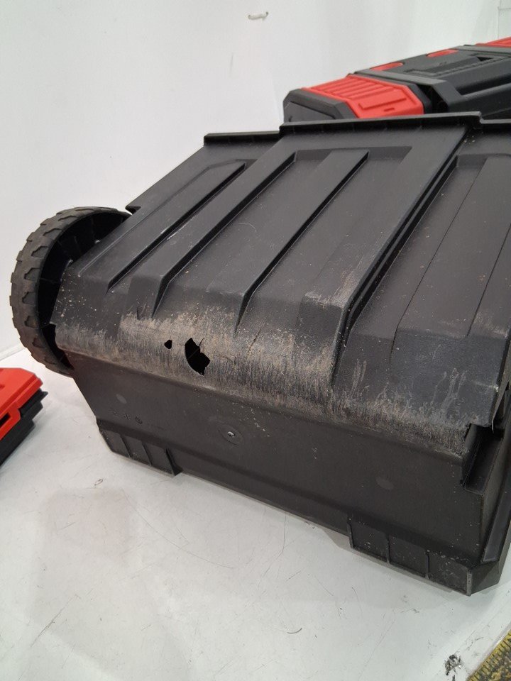 item has one wheels broken off also the lower part has a small hole underneath and scratches this is possibly due to shipping and not being properly packaged