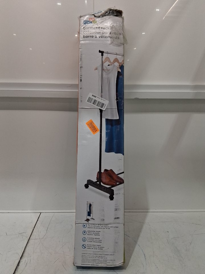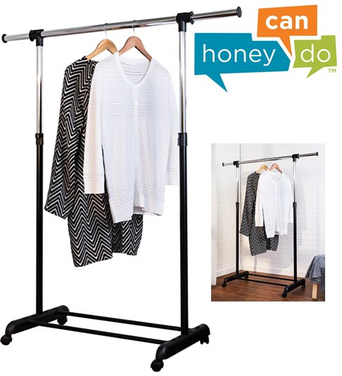 honey can do garment rack with wheels - 33" x 17" x 40" to 66" - black/chrome (model: GAR-01124)