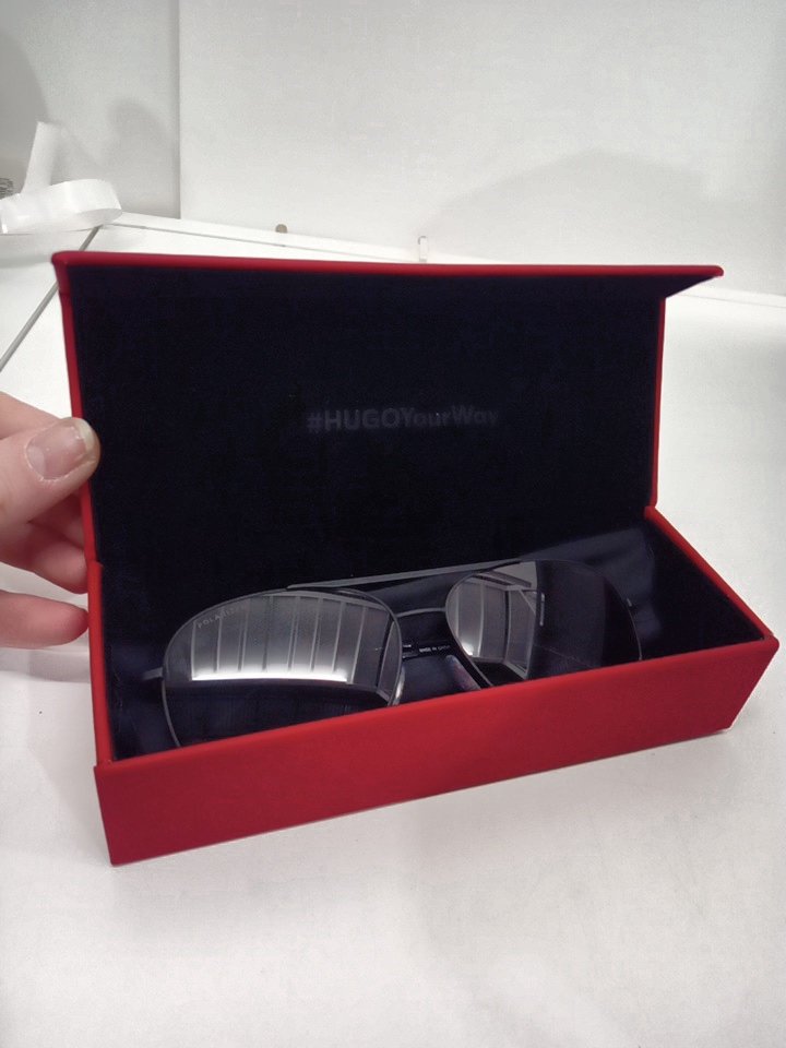 unisex hugo tubular-temple sunglasses - black acetate / red ( style : hg 1318/cos 003wj)