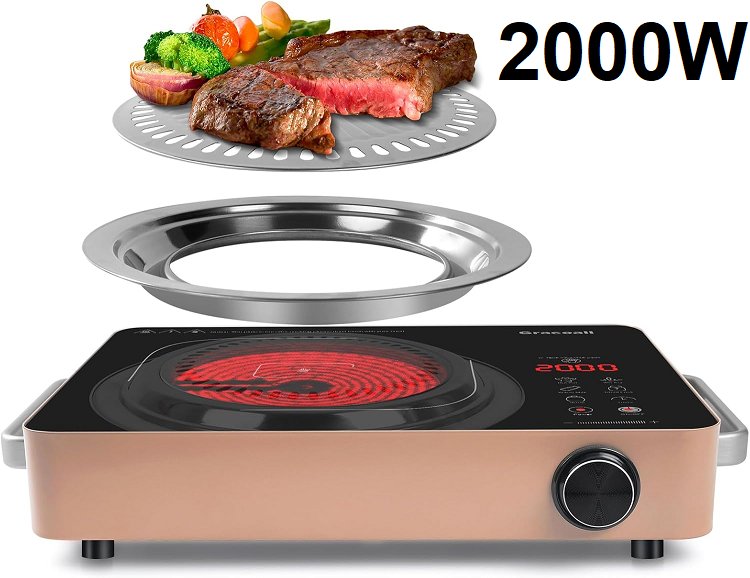 GRACEALL Single Burner Cooktop Portable Electric stove hot plate - 2000W 110V - black