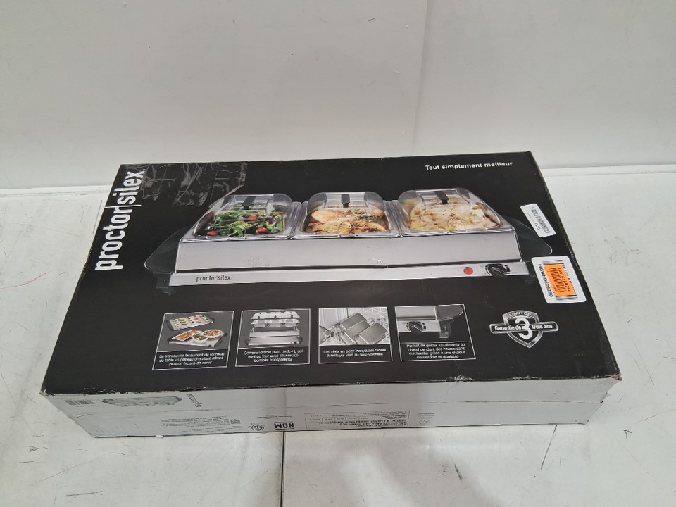Proctor Silex Adjustable Heat Buffet Server & Food Warmer with 3 oven-safe dishes - 2.4L /each - Silver (Model: 34300RG)