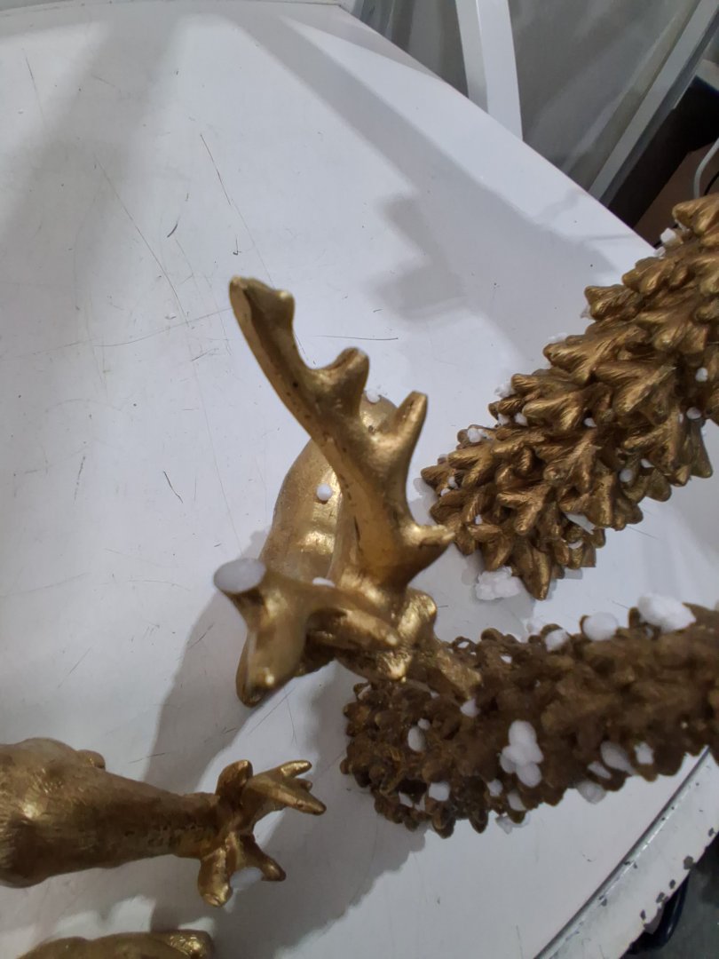 two of the reindeer's hooves are broken and just need to be glued back together, see photos.