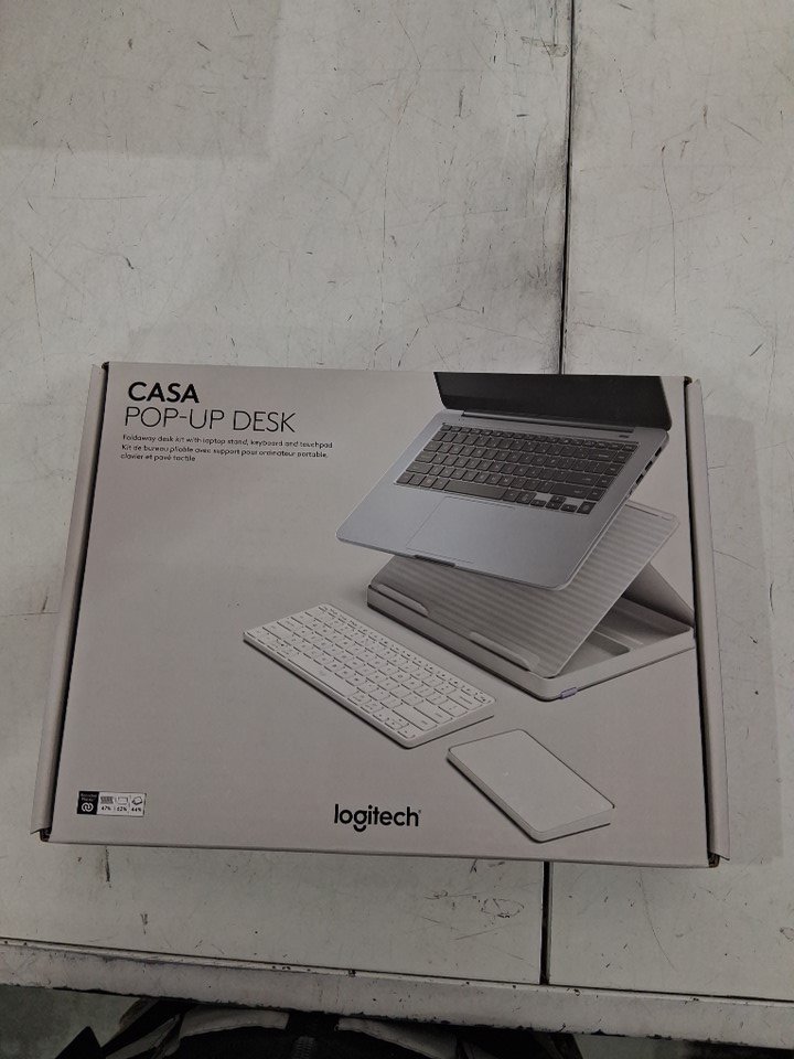 Logitech Casa Pop Up Desk Work Kit with Laptop Stand, Wireless Keyboard & Touchpad, AND Bluetooth COMPATIBILITY - FITS LAPTOPS 10"-17" - PURPLE/TAN (MODEL: 920-011238)