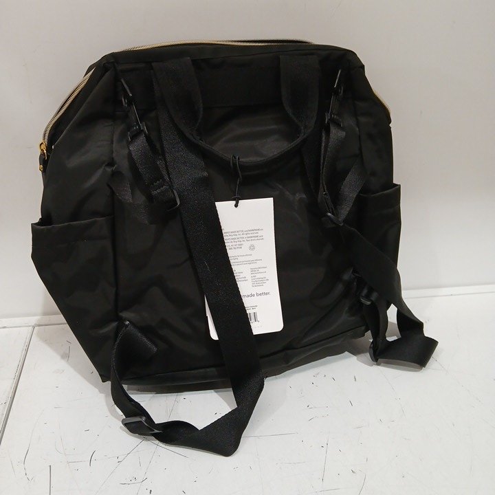 skip hop diaper bag backpack with changing pad & stroller attachments - 15" x 15" x 7" - black with gold trim (model: 200150)