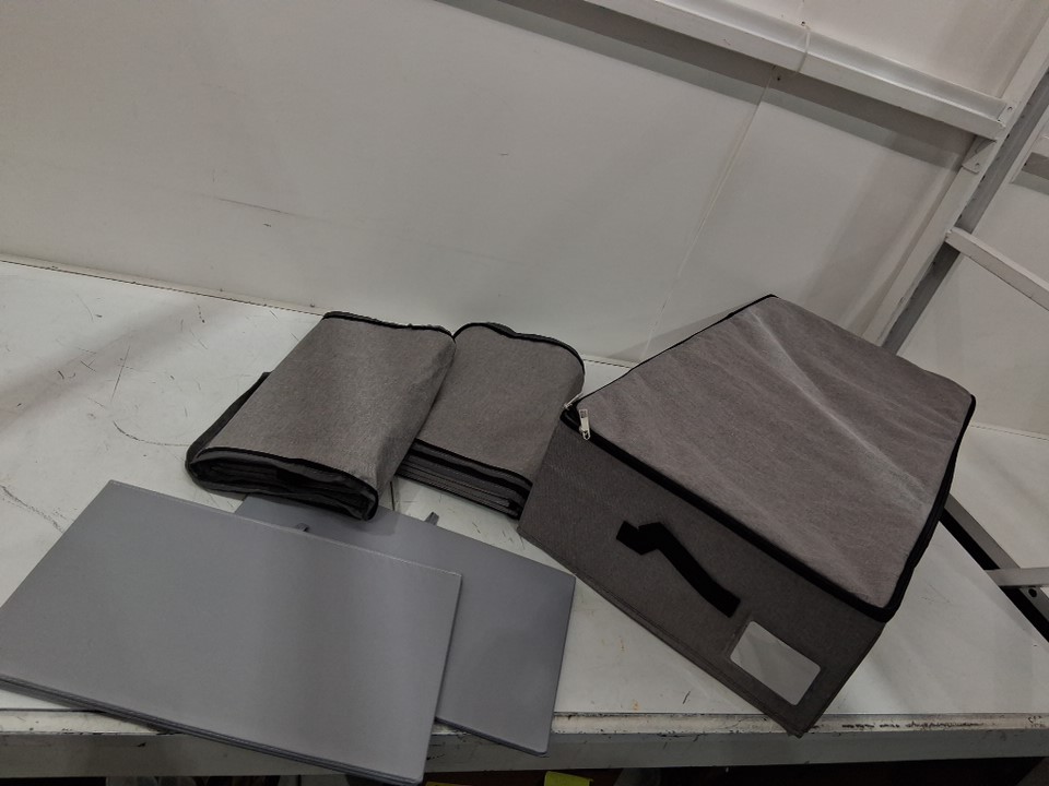 AMJ FOLDABLE UNDER BED DURABLE FABRIC STORAGE BAGS FOR CLOTHES, SHOES, TOYS , COMFORTER & MORE - 29.5"X15"x7" - BLACK/GREY