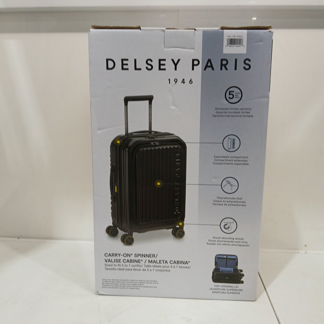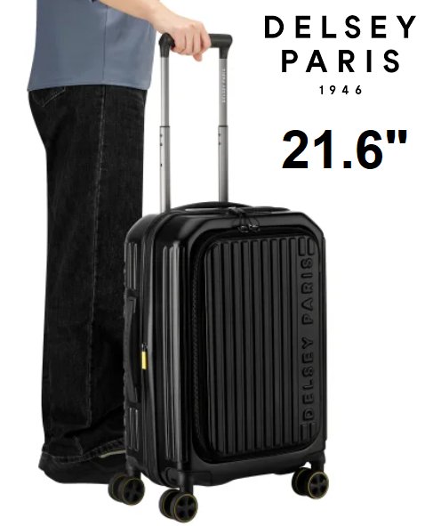 DELSEY PARIS FRONT-LID OPENING CARRY ON SPINNER LUGGAGE - 21.6" - BLACK (MODEL: 1819426)