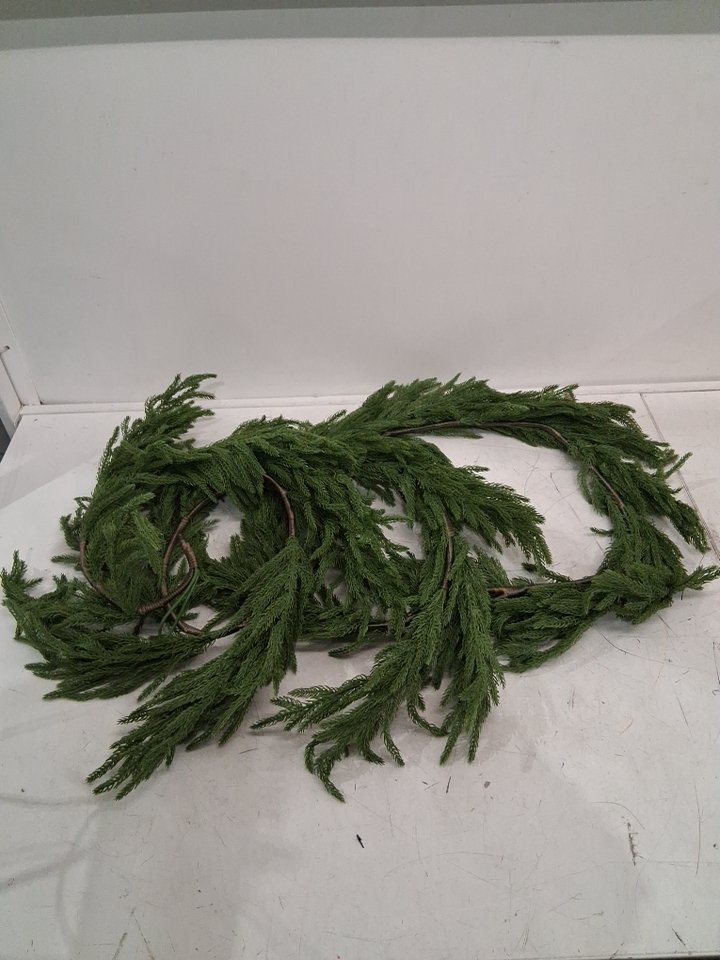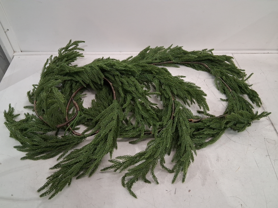 MISSPIN Artificial Norfolk Real Touch Winter Pine Garland - 9FT - ORIGINAL GREEN