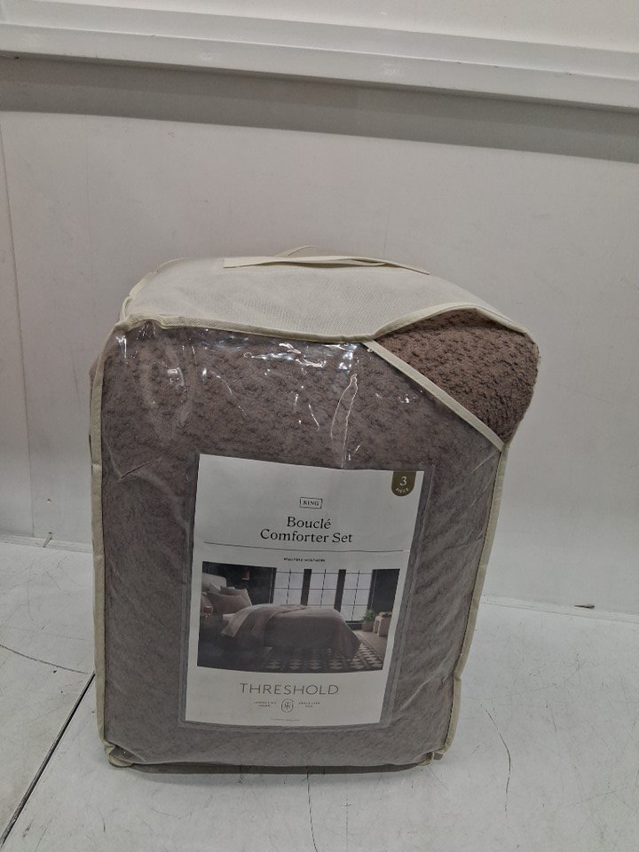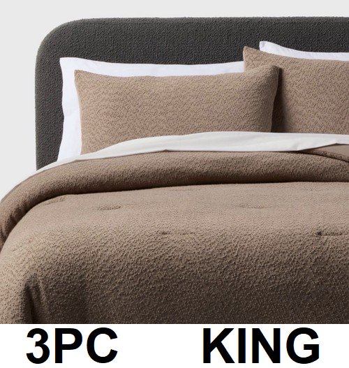 3PC THRESHOLD BOUCLE COMFORTER & PILLOW SHAM SET - KING - BROWN