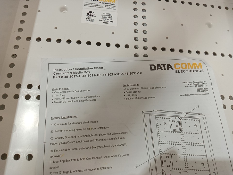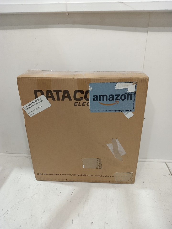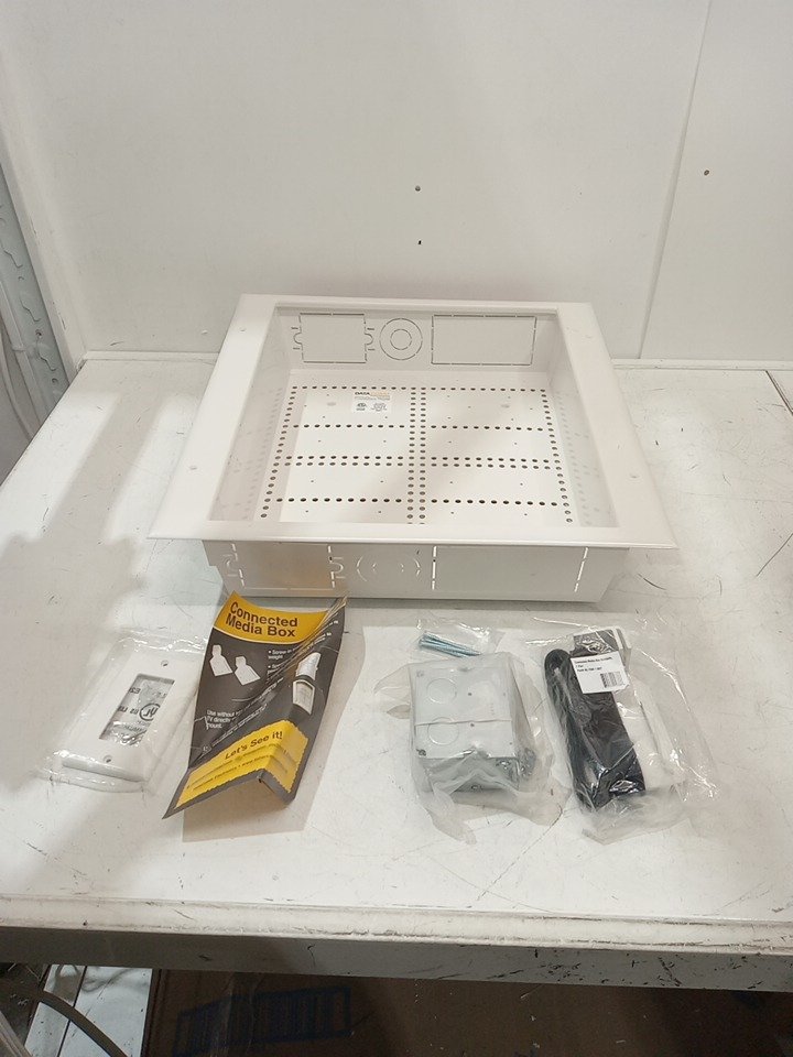 data comm electronics connected media box with duplex power receptacle - 17.5" x 18" x 3.4" - white (model: 45-8011-1p)