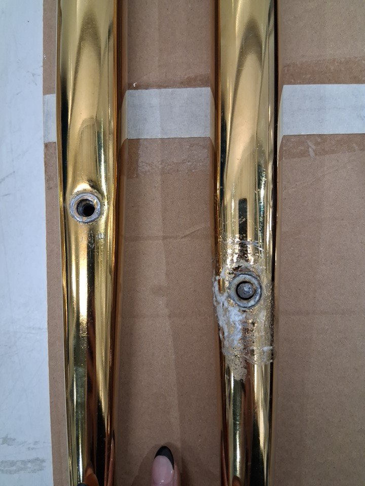2 of the legs have previous assembly on them as well as one has some glue residue on it.