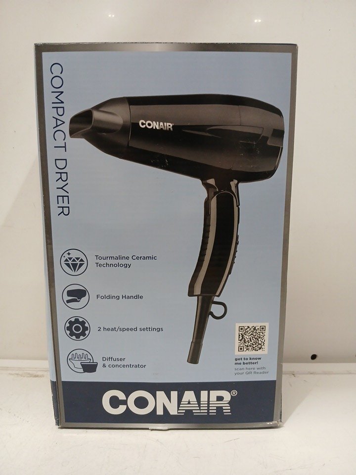 conair folding compact hair dryer with 2 attachments - black (model: 5549nc)