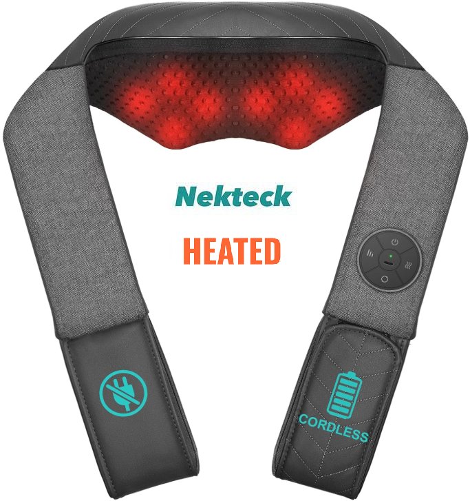 nekteck wireless shoulder 7 neck massager with heat function - grey (model: ‎NK-NM03)