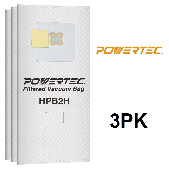 3pk POWERTEC 5-ply central Vacuum Bags - HPB2H, Replacement Filter Bags for AstroVac, Valet, vacumaid Central Vacuums - white (model: 75046)