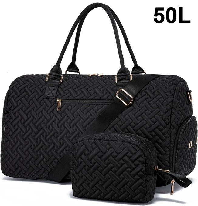 Duffle Bag FOR TRAVEL with Shoe Compartment 50L - BLACK