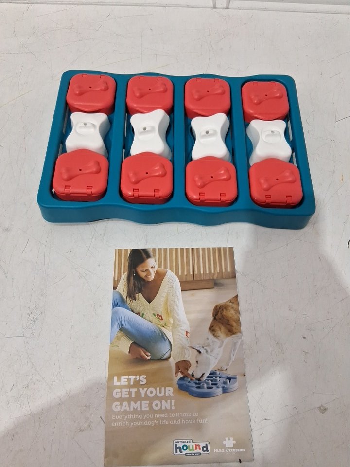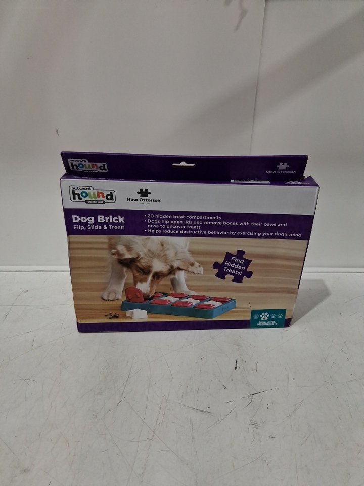OUTWARD HOUND BRICK TREAT DISPENSING PUZZLE GAME FOR DOGS - LEVEL 2: INTERMEDIATE - BLUE/WHITE/RED (MODEL: 67333)