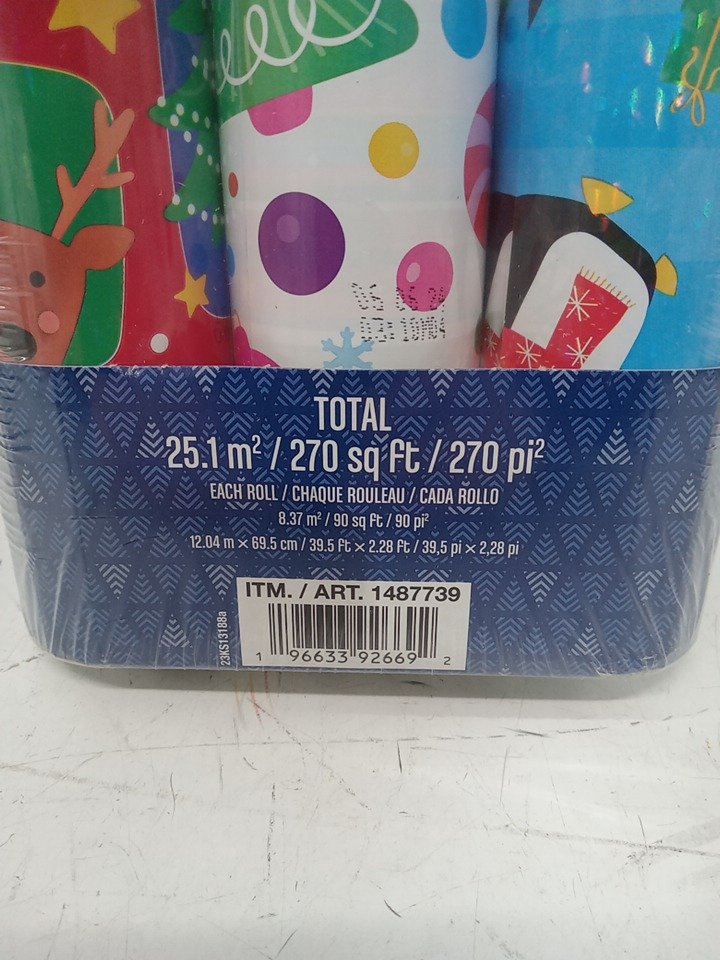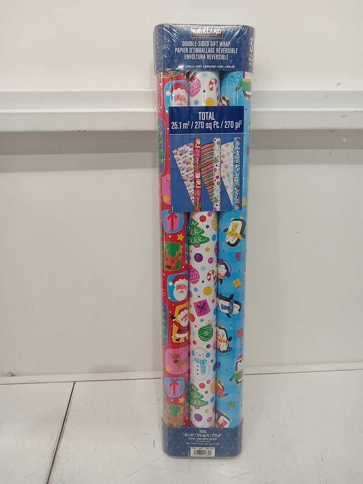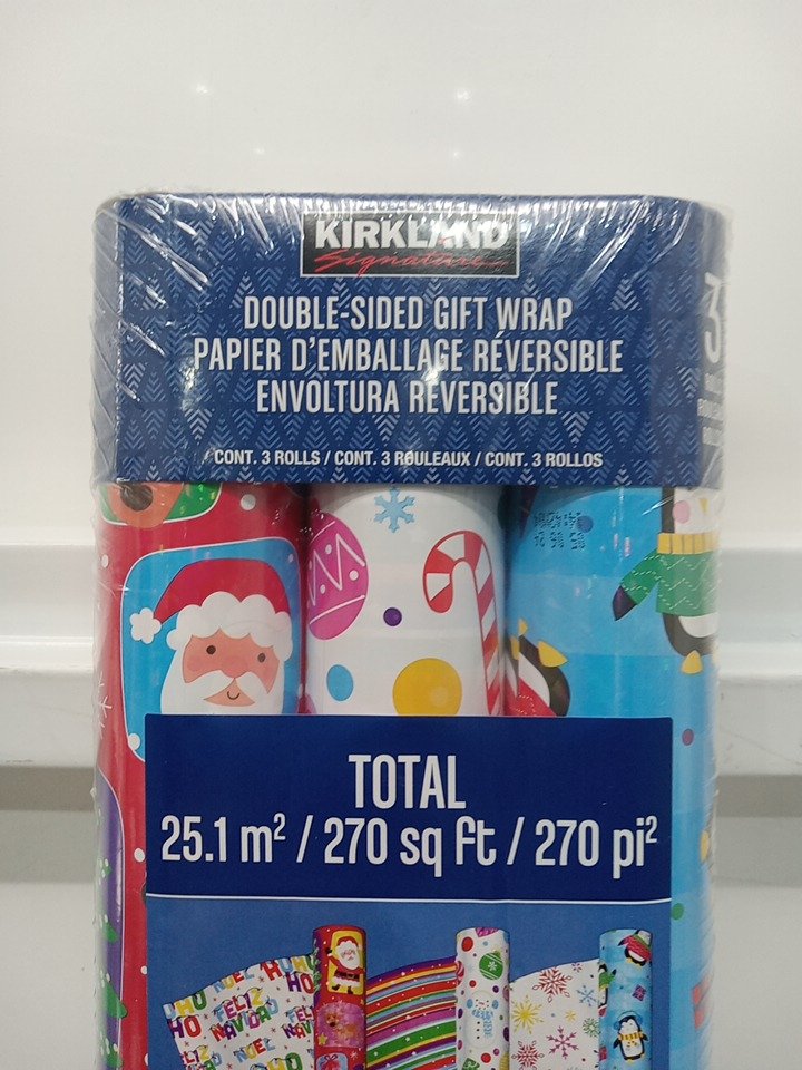 3PK KIRKLAND SIGNATURE CHRISTMAS Double Sided Gift Wrap - 270 SQ FT - MULTICOLOR (MODEL:1487739)