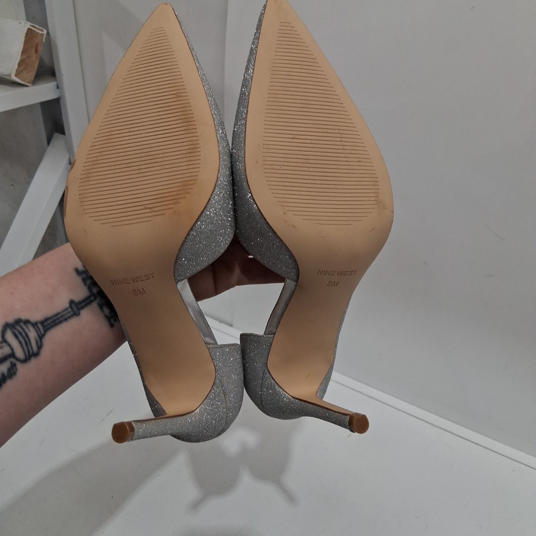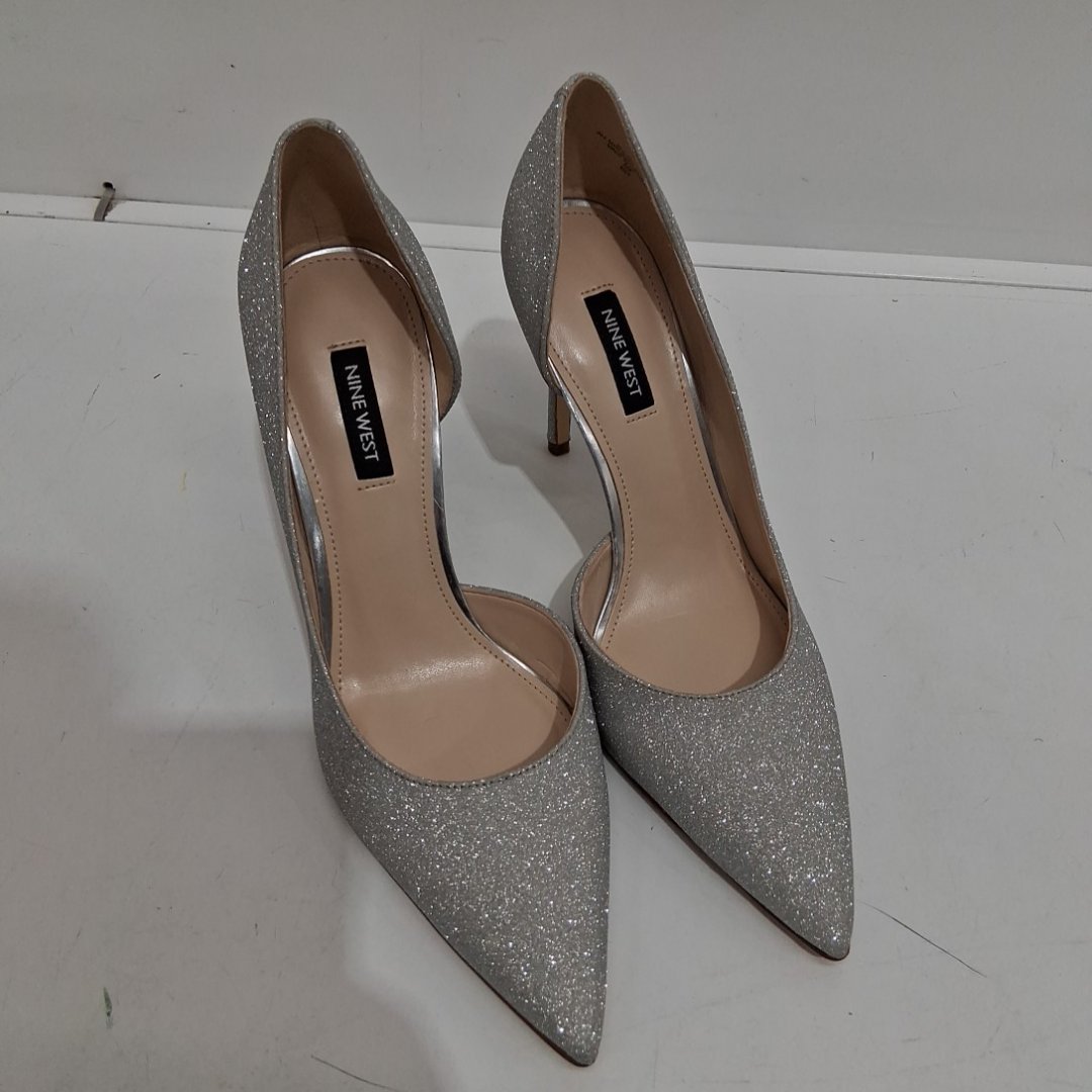 WOMEN'S NINE WEST FOLOWE PUMP - SIZE 8 - SILVER GLITTER (style: wnfolowe3)