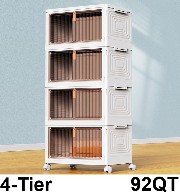 FLNMPRO 4 Tier Stackable Storage Bins with Lids and wheels - 23QT each - 92QT Total - White/Clear
