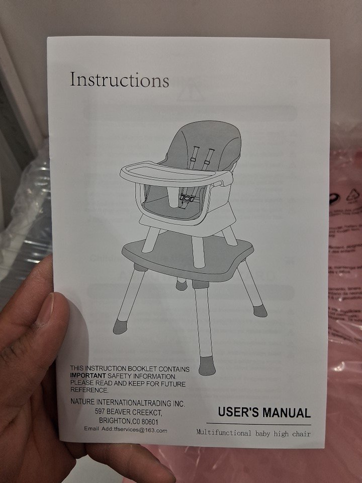 Angel Sar Adjustable multifunctional Baby High Chair with Safety Belt & Wheels for Home Use - 37.4'' x 20.9'' x 29.9'' - pink