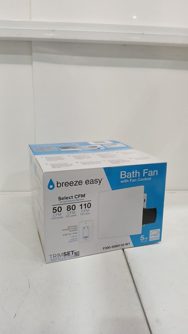 DEWSTOP BREEZE EASY SELECT CFM BATH VENTILATION FAN WITH AUTOMATIC HUMIDITY CONTROL - AIR & SOUNDS OPTIONS (UP TO 110CFM) - WHITE (MODEL: F300-5080110-W1)