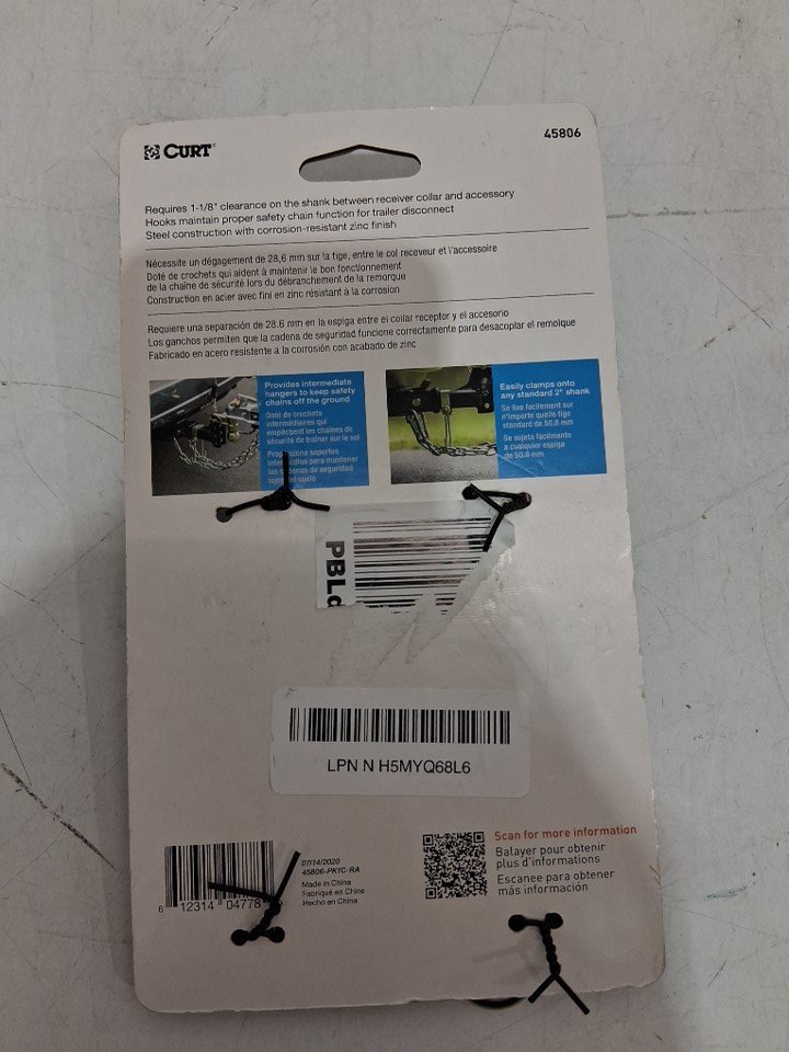 CURT Trailer Safety Bolt-On Steel Hanger Chain Holder Bracket/Hooks - for 2" Shank - (model: 45806)