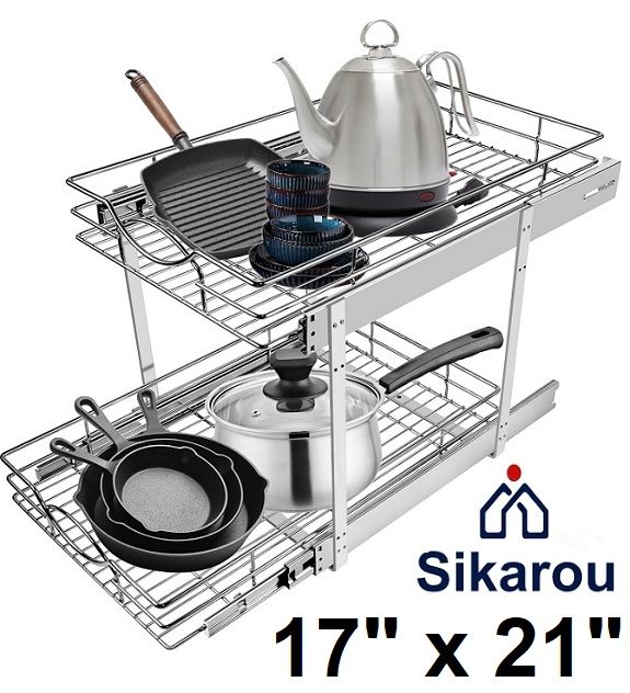 Sikarou 2-Tier Pull Out Cabinet Organizer - 17" x 21" - Chrome