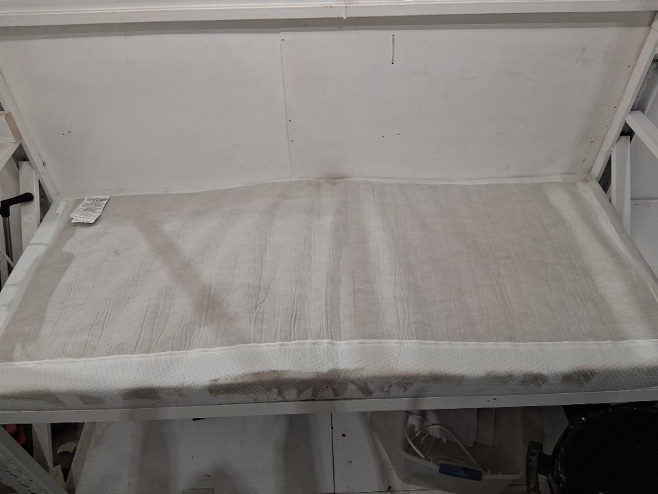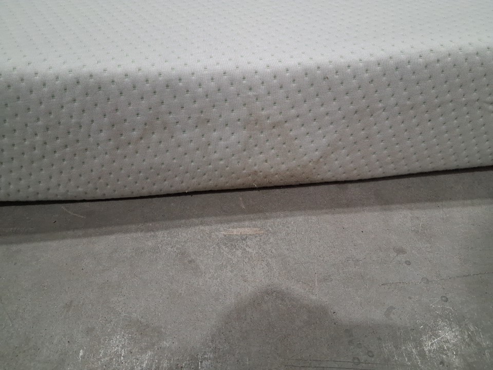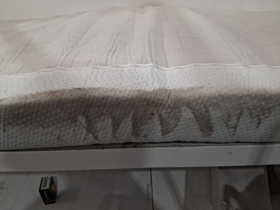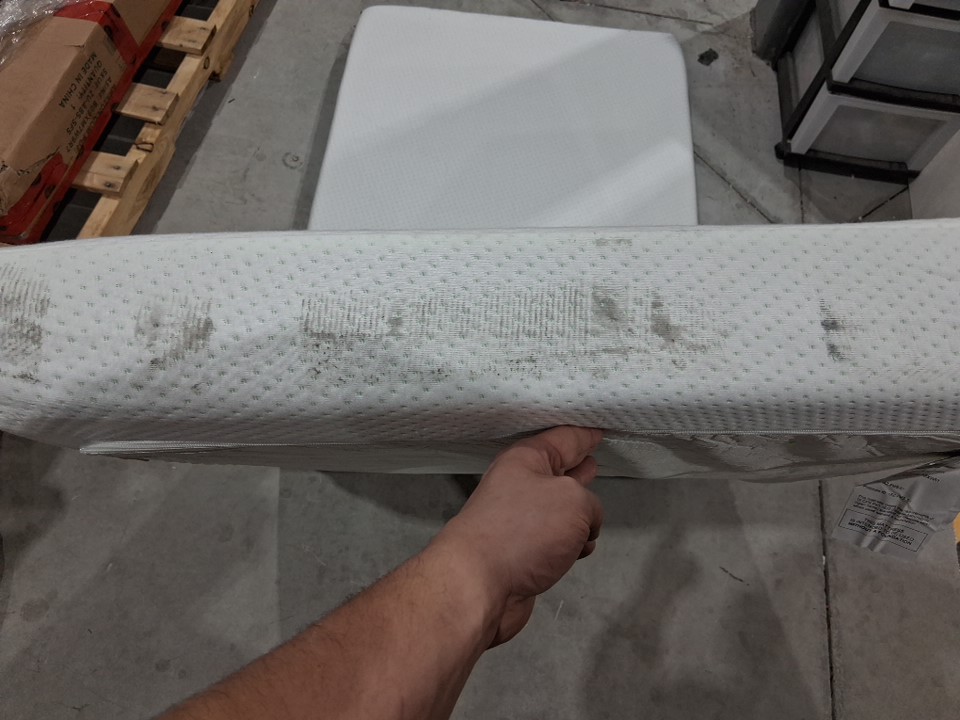 There are some heavy dirt/dust stains on the sides of the mattress due to shipping. The top surface appears to be free of stains - see photos. There are no clear indicators of previous use, but cleaning the sides will be somewhat time consuming if customer wishes to do so.