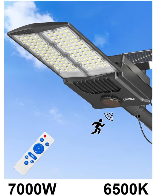 jaynlt multi functional solar street light for outdoor use- 7000w, 6500k, 30000mah rechargeable battery- black (model: ‎Y-7000W)