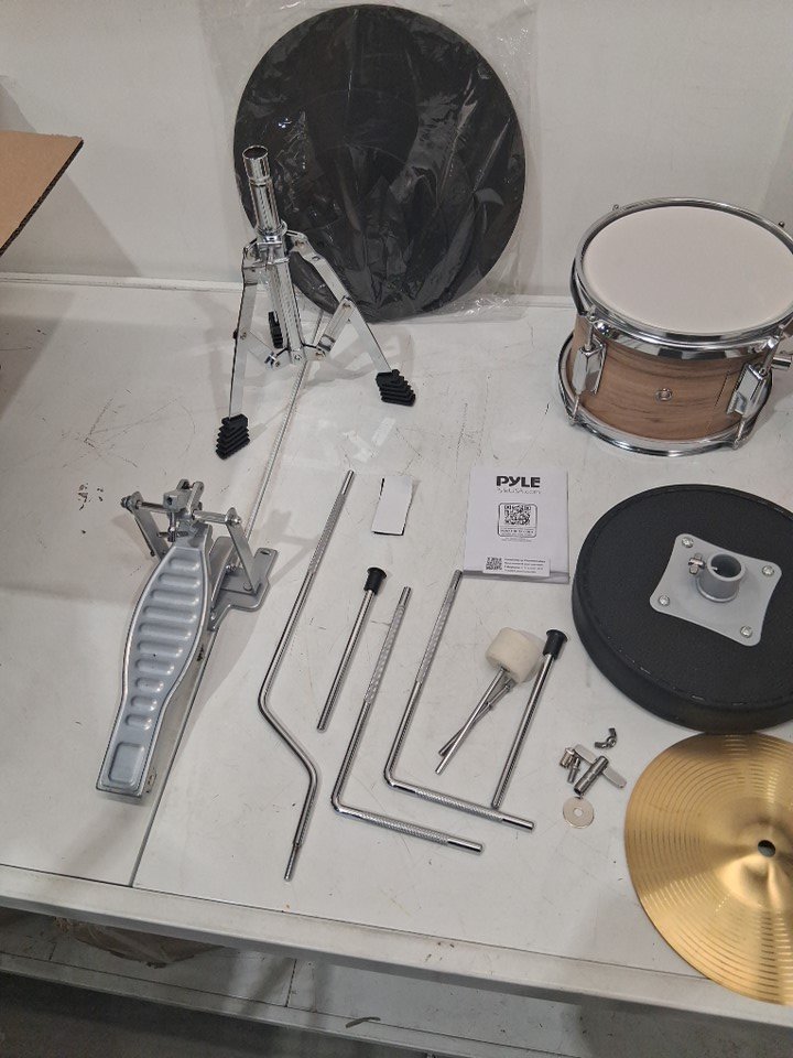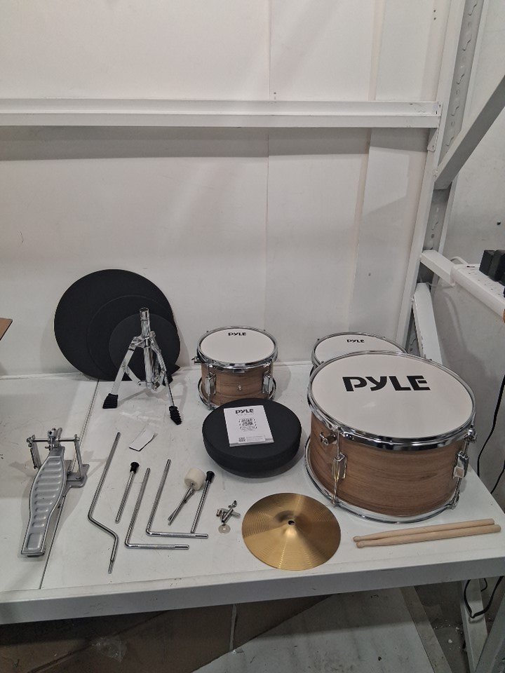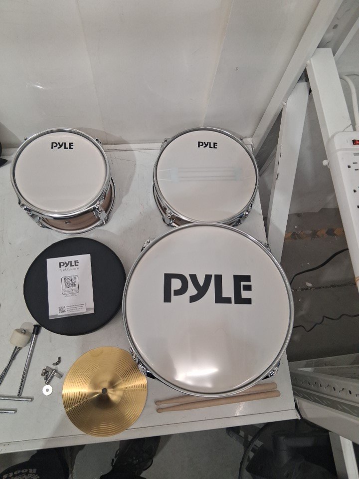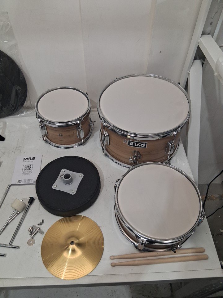 7PC kids PYLE drum set with Bass Drum & Foot Pedal, Snare, Tom and Cymbal - white/natural (MODEL: PDRMKIT72N)