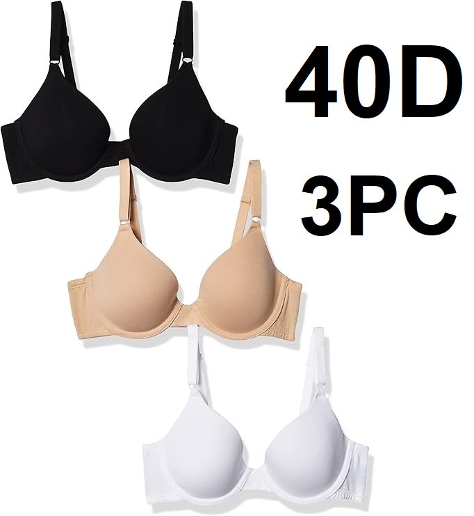 3PC WOMENS FRUIT OF THE LOOM COTTON STRETCH EXTREME COMFORT BRA - 40D - WHITE/BLACK/BEIGE - (MODEL: ‎ FT797PKA)