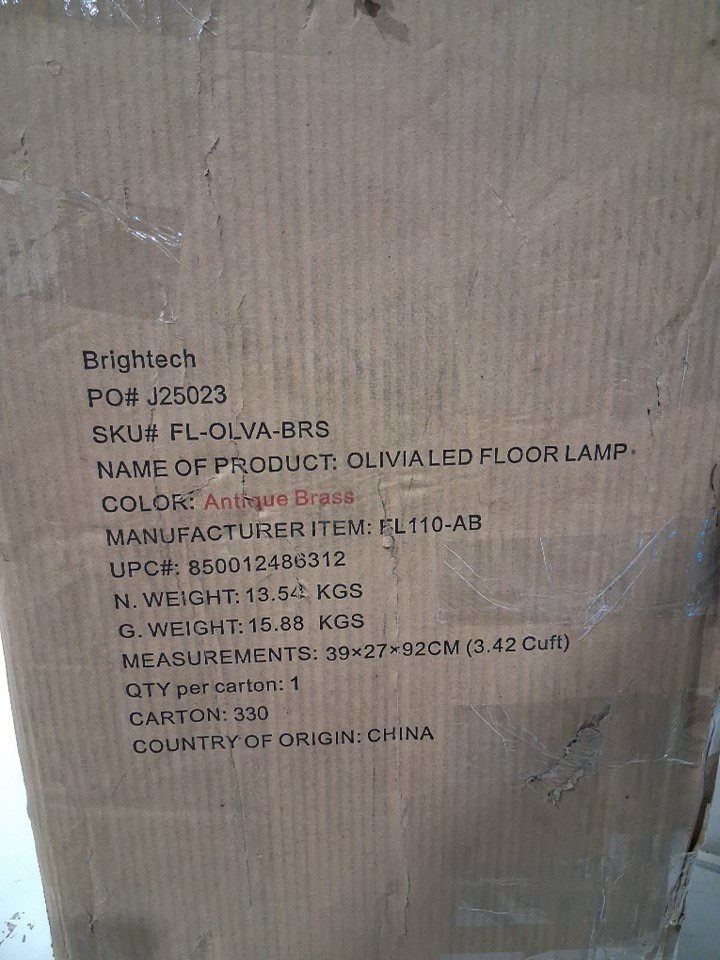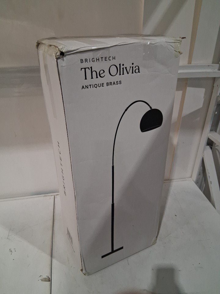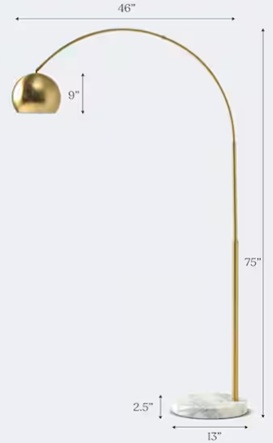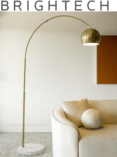 Brightech The Olivia Adjustable Antique Industrial 1-Light LED Arc Floor Lamp with Metal Bowl Shade - 57" x 13" x 75" - Brass (Model: FL-OLVA-BRS/J25023)