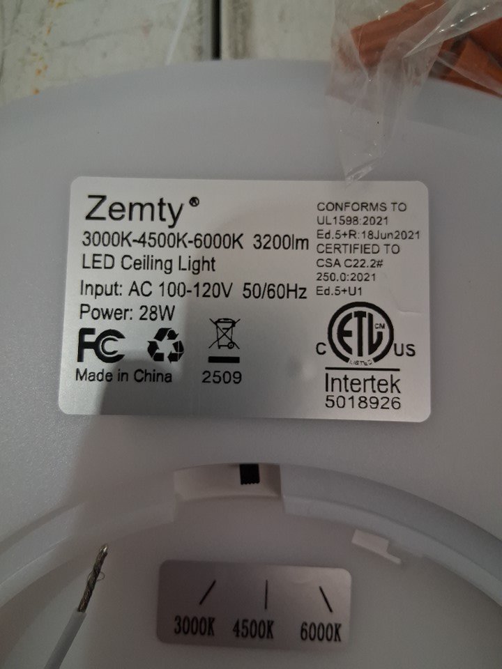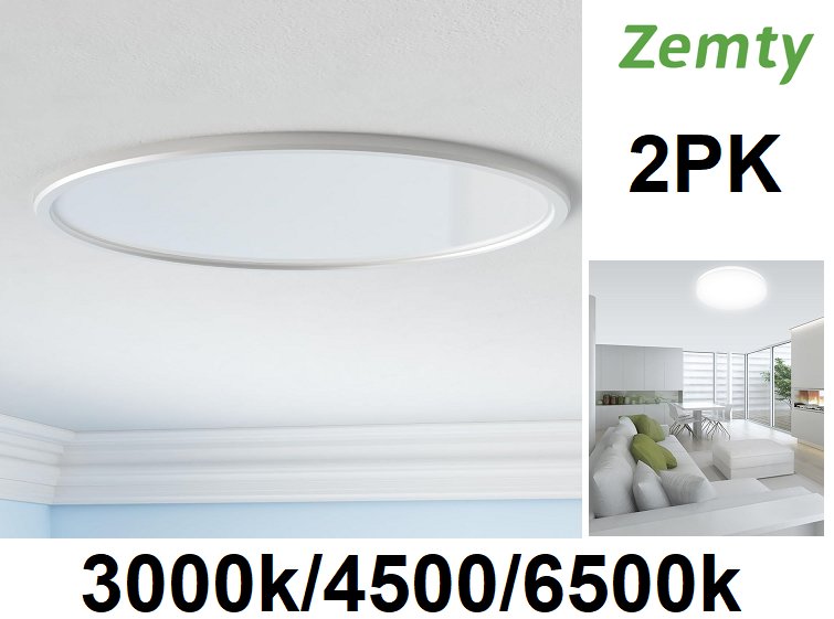 2pk zemty led ceiling light fixtures with 3 light temperatures - 3000k/4500/6500k - 3200lm - white
