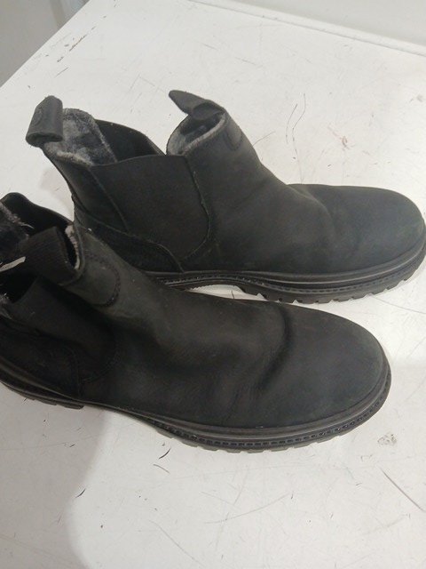 There are scuff marks and debris all over the boots.