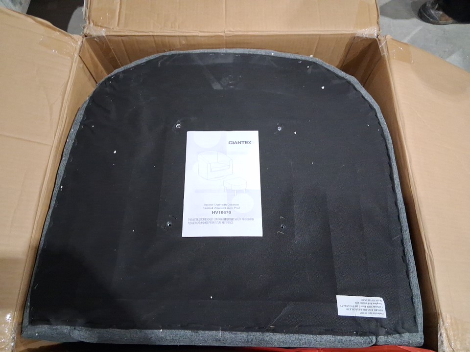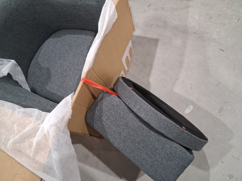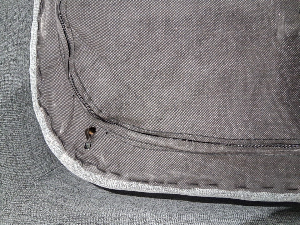 O5ttoman has a very small rip on the underside next to where the leg screw in