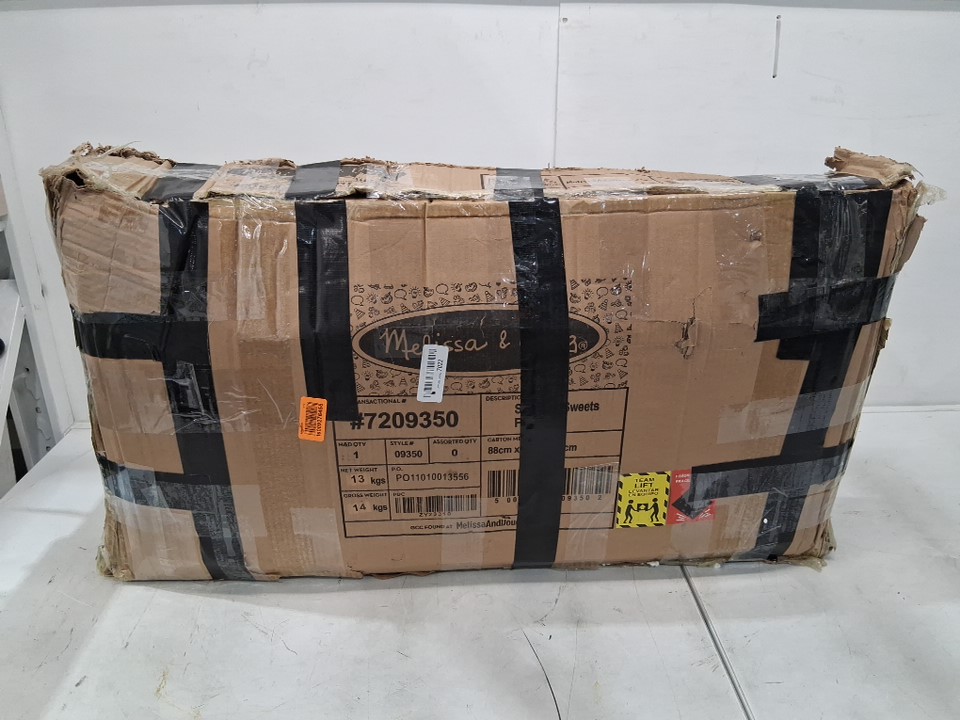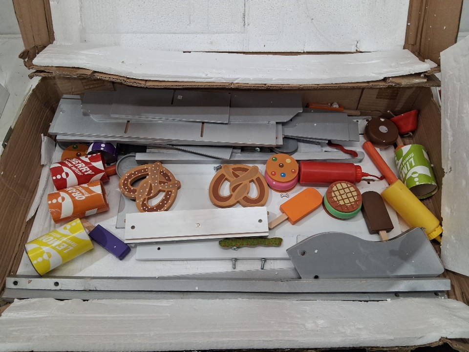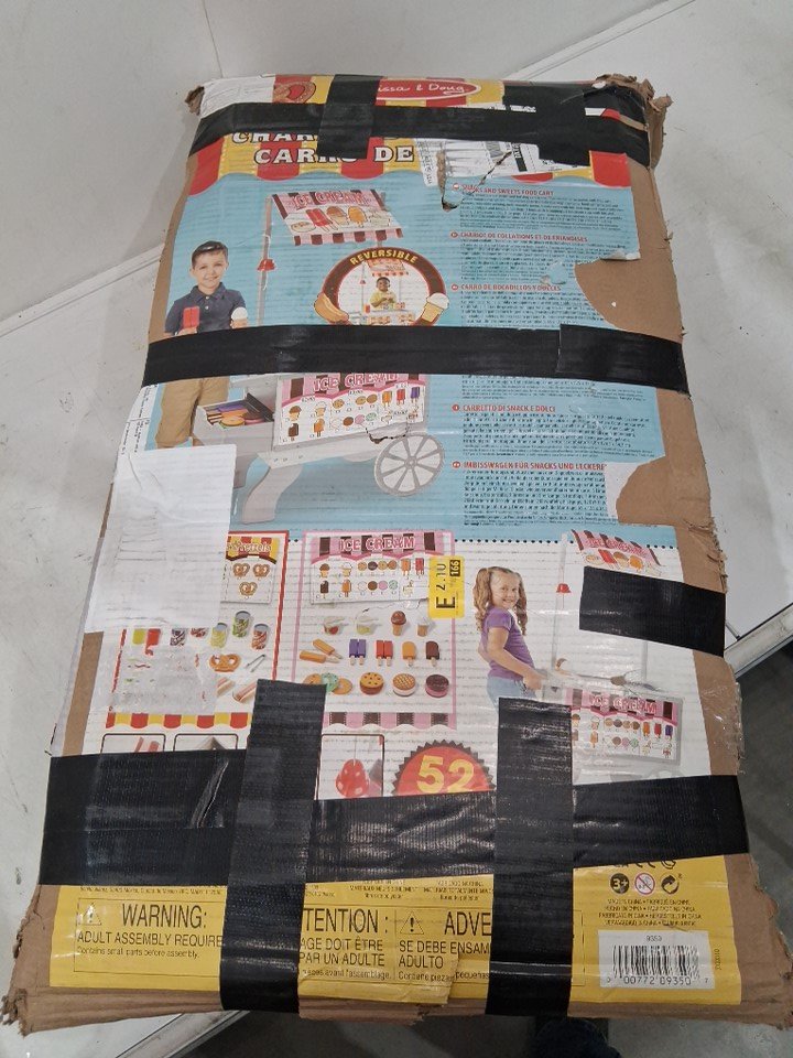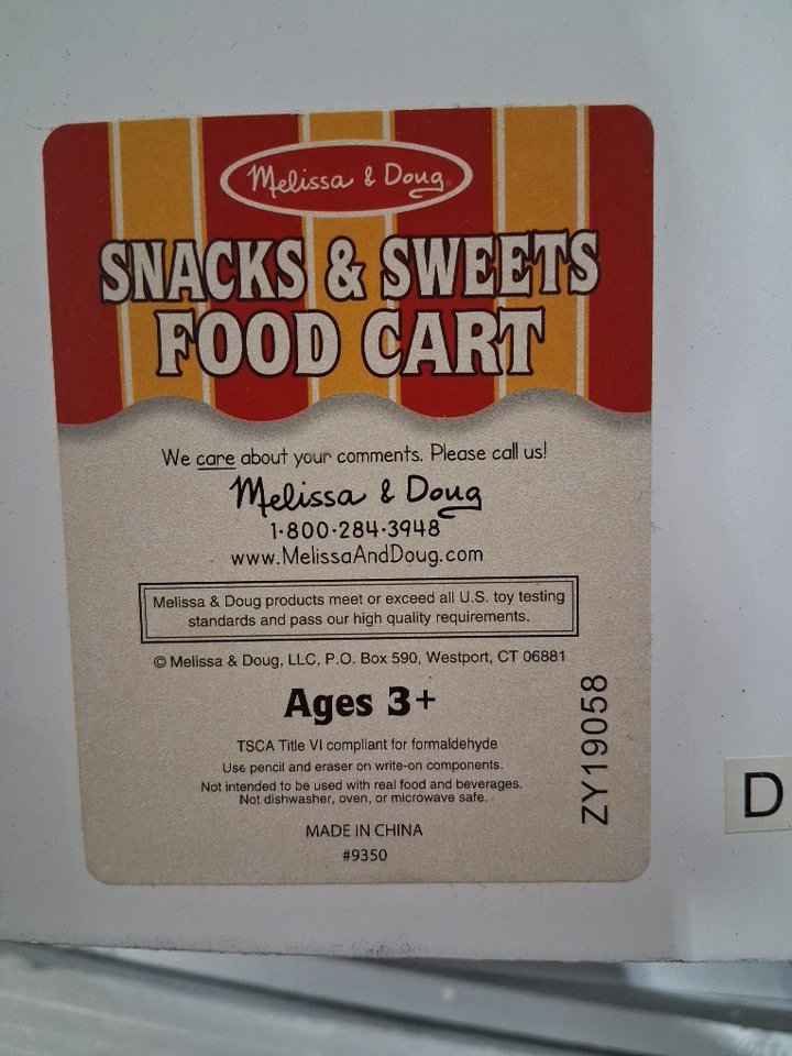 Melissa & Doug Wooden Snacks & Sweets Food Cart, Play Sets & Kitchens, Reversible Awning, 40+ Play Food Pieces (model: 9350)