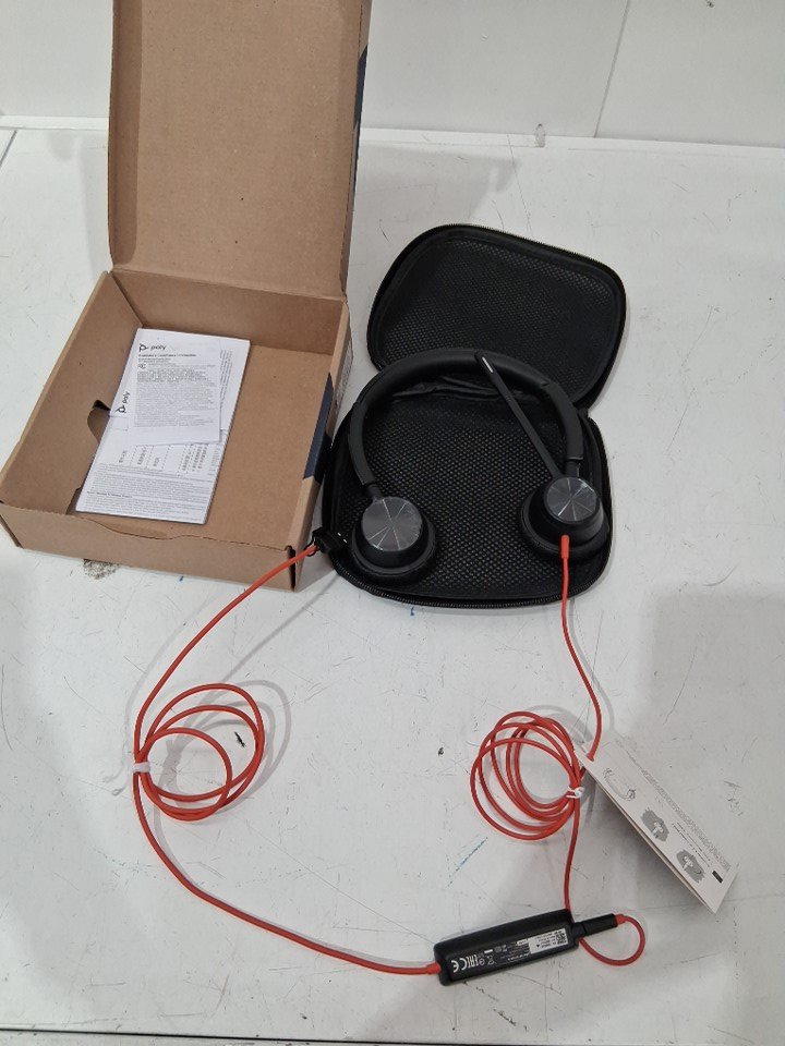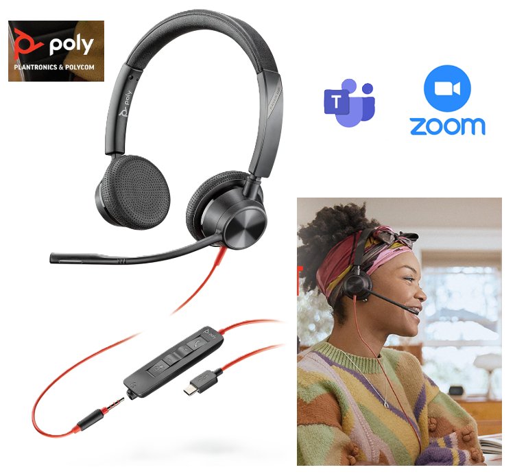 poly blackwire 3325 wired stereo over ear headset with boom mic- works with teams zoom ect- black/orange ( model: bw3325-m)-