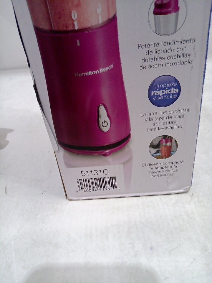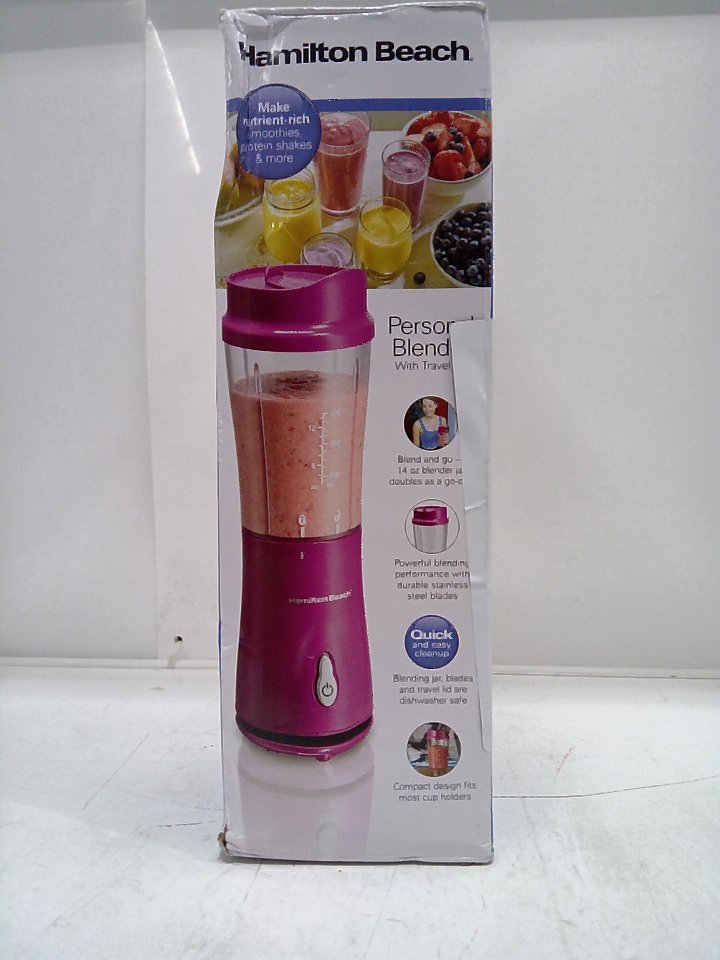 HAMILTON BEACH SINGLE-SERVE PERSONAL BLENDER with travel lid - 14OZ - PINK - (MODEL: 51131G)