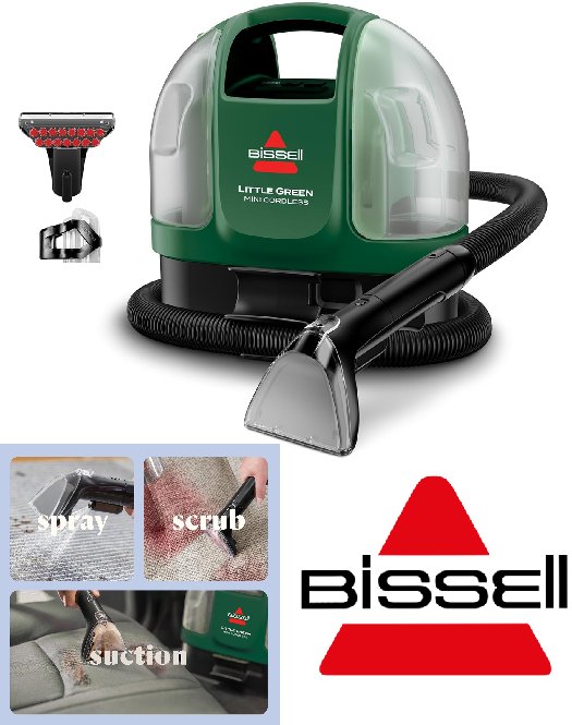BISSELL Little Green Mini Cordless Portable Carpet and Upholstery Deep Cleaner- GREEN/GREY - (MODEL: 4015b)