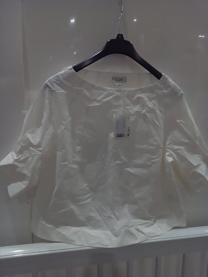 cos VOLUMINOUS BOAT-NECK COTTON BLOUSE - size 16 - white