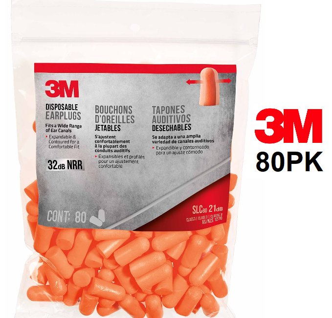 80PK 3M DISPOSABLE EARPLUGS 32DB NRR - orange