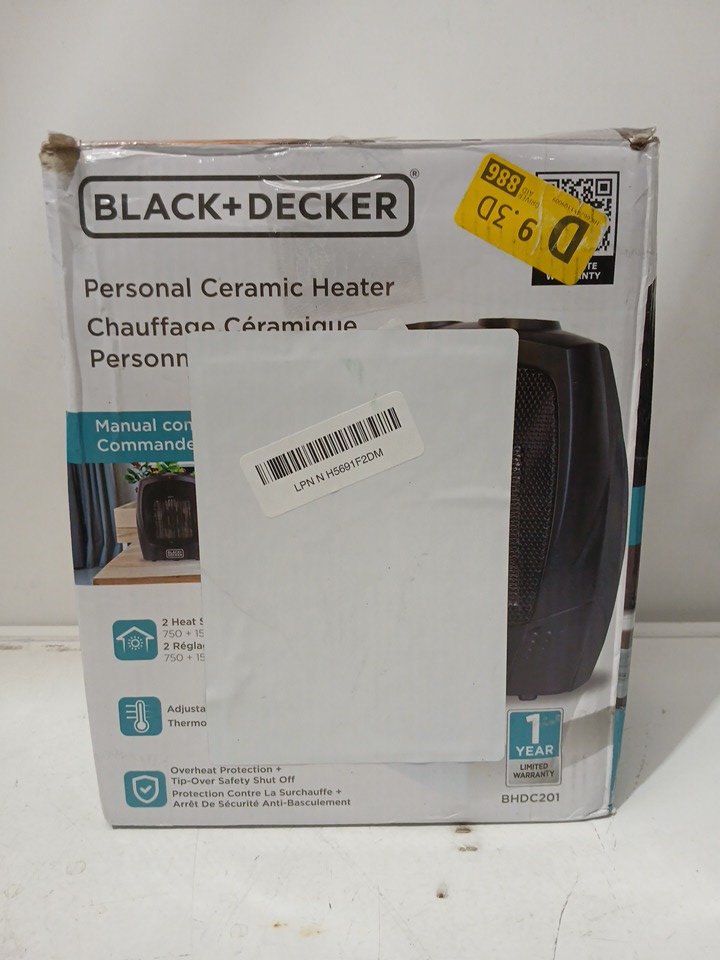 BLACK + DECKER PORTABLE 2-IN-1 SPACE HEATER WITH CARRY HANDLE, OVER-HEAT PROTECTION & TIP-OVER PROTECTION, 1500W - BLACK (MODEL: BHDC201)