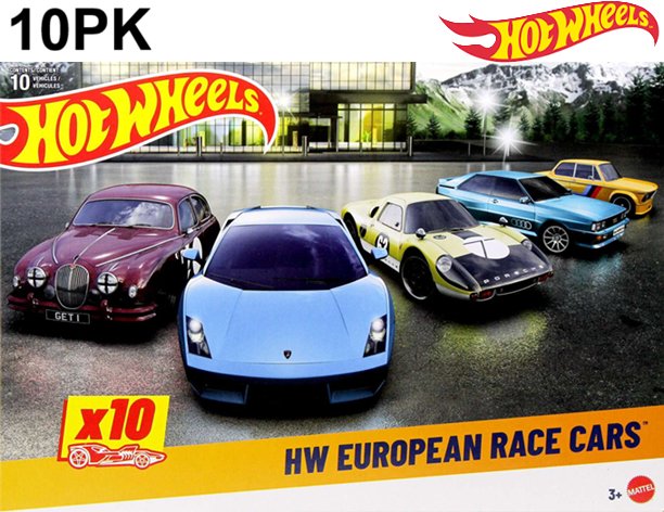 10PK KIDS HOT WHEELS EUROPEAN RACE CARS SET - ASSORTED COLOURS