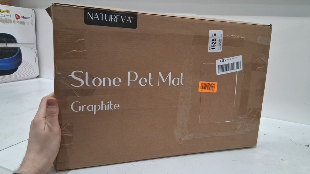 Natureva Stone Pet food Mat Diatomaceous Earth - 11" x 18" - Grey/Graphite