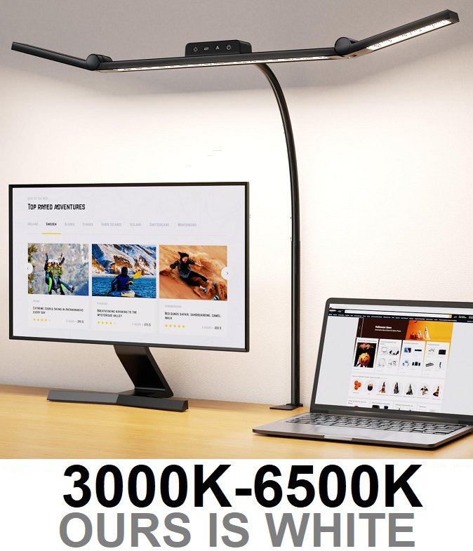 EppieBasic LED Dimmable clamp on Desk Lamp - 3 Light Bars - Adjustable Light Temperature - 3000K-6500K - Black (Model: TRI-24V-001)