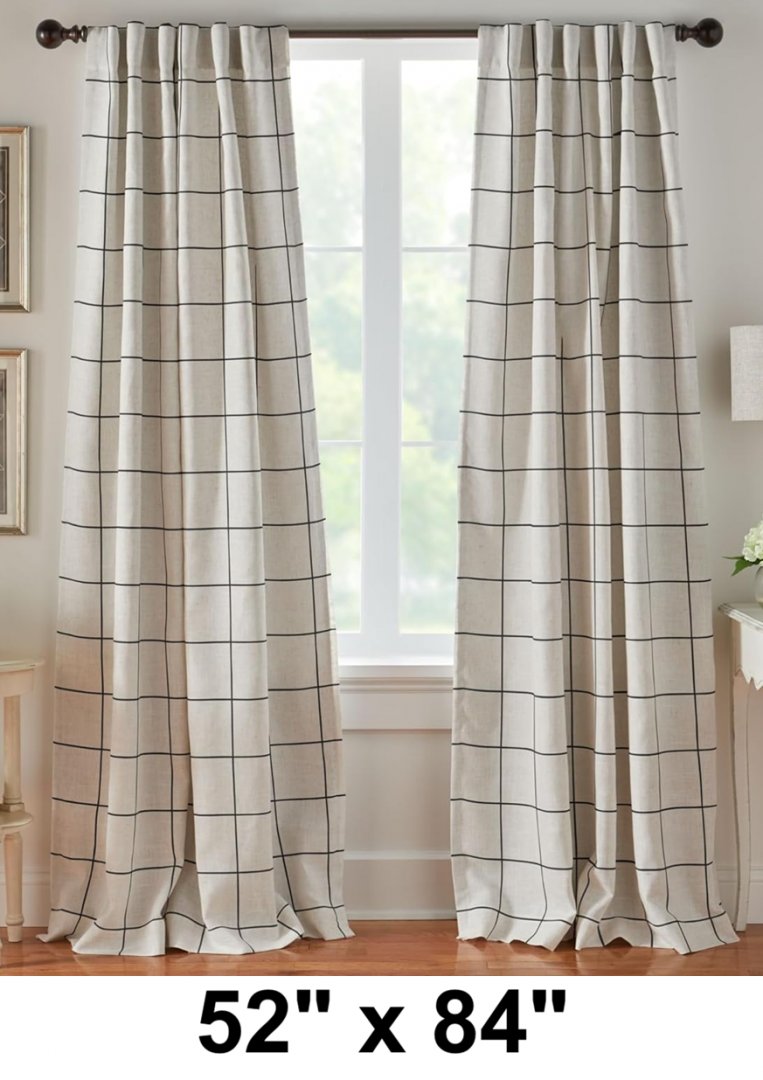 (1 Panel) Elrene Home Fashions Brighton Windowpane Grid Rod Curtain - 52" x 84" - White/Black