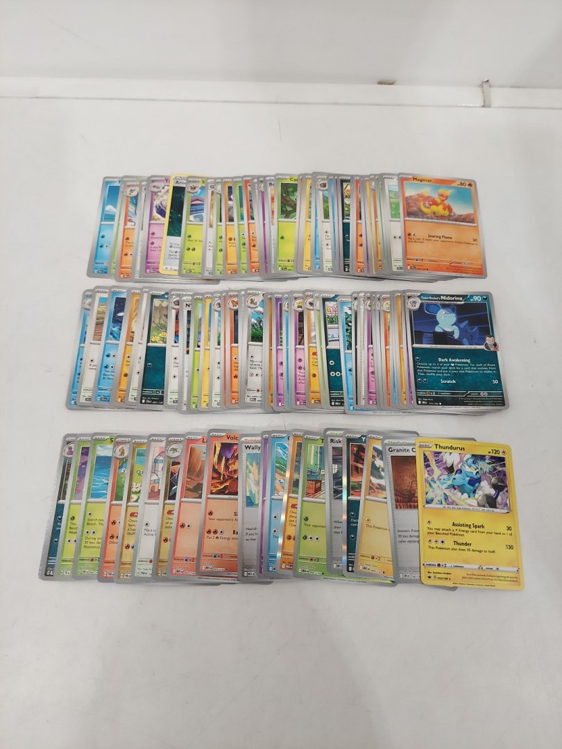 100 ASSORTED POKEMON TRADING CARDs including foil cards and reverse foils from assorted tcg sets
